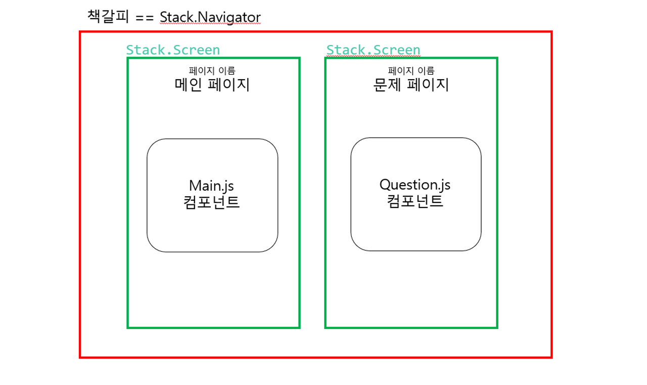 페이지는 Stack.Screen 이라 부르며 책갈피는 Stack.Navigator라 부릅니다